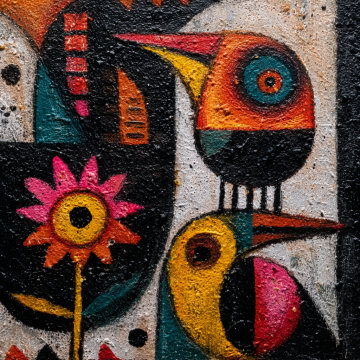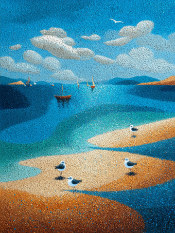 油画风印象画派,梦幻清新,色彩斑斓的花树在春风中绽放。