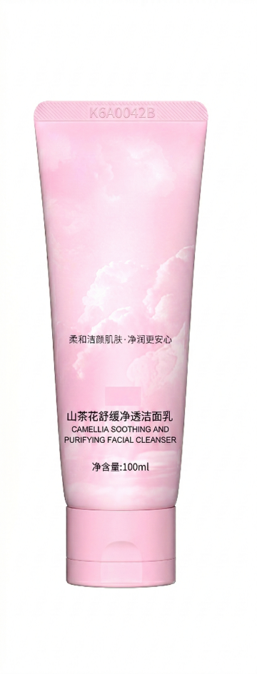 3D轻拟物风格,简约主义设计,清透泡沫粒子环绕洁面乳,营造清新柔和的视觉感受,传递清爽舒适的护肤体验。