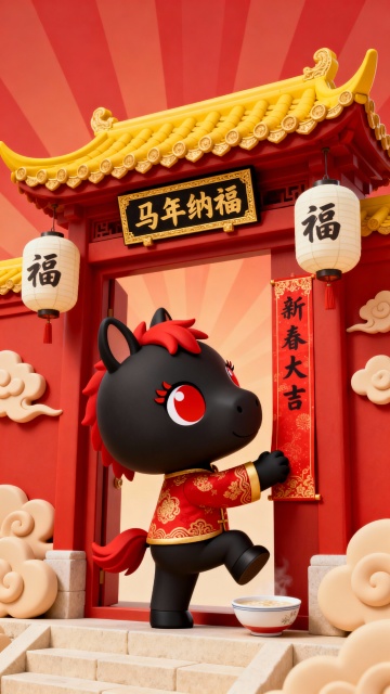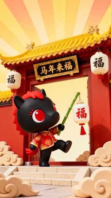 马年春节3D风格|马年来福