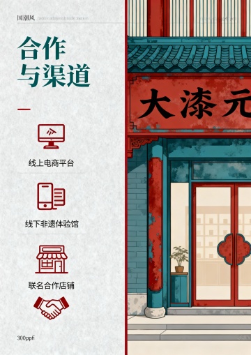 核心风格要求(所有页面通用前缀):国潮风,融合大漆非遗技艺元素(漆色、漆纹、漆工艺细节),现代简约审美,色彩以大漆经典色(朱红、乌黑、明黄、石青)为主,搭配低饱和辅助色,画面细腻有质感,版式干净留白合理,符合品牌年轻化定位,高清商业宣传册质感,300dpi,适合印刷第1页:封面提示词:国潮风品牌宣传册封面,主体展示“漆造”品牌Logo,Logo融入大漆髹涂纹理,背景为渐变朱红大漆底色,点缀细金漆线条勾勒的传统缠枝纹,右上角标注核心定位“千年大漆,玩转出圈”,右下角小字“非遗大漆年轻化品牌”,整体风格大气简约,视觉中心突出,无多余元素第2页:品牌引言·何为漆造提示词:国潮风宣传册内页,左侧大面积留白,用乌黑漆色书写标题“何为漆造”(书法字体),下方配小字“以漆为媒,连接传统与当下”;右侧分上下两个小版块,上方是浅米色背景搭配朱红漆线勾勒的大漆树简笔画,下方是简洁文字区域(文字内容占位符:“漆造,立足大漆非遗年轻化传播,打破技艺认知门槛,让千年漆艺走进当代生活”),画面左侧加1条细石青漆色竖线分割,整体雅致有呼吸感第3页:核心定位·千年大漆 玩转出圈提示词:国潮风宣传册内页,版式左右分栏,左侧朱红大漆底色,用金色字体突出核心定位“千年大漆,玩转出圈”,背景暗纹为大漆推光工艺的细腻光泽纹理;右侧浅灰色背景,上方是“定位解读”标题(石青漆色),下方用简洁图标+文字占位符呈现核心逻辑:“传统漆艺传承+潮流载体创新+情感互动体验”,每个逻辑点搭配简约漆艺元素图标(漆刷、潮流配饰、握手符号)第4页:非遗底蕴·大漆的千年传承提示词:国潮风宣传册内页,上方通栏展示大漆技艺历史场景简绘(低饱和度水墨风格,描绘古代工匠髹漆场景),下方分两栏,左栏标题“大漆非遗的文化内涵”(乌黑漆色),配朱红漆色细边框;右栏标题“千年技艺的当代价值”(乌黑漆色),同样配朱红漆色细边框,两栏均预留文字占位符区域,背景点缀细微漆粉质感纹理第5页:品牌Logo设计解析提示词:国潮风宣传册内页,左侧主体展示“漆造”Logo完整图形,Logo采用朱红与乌黑撞色,融入大漆缠枝纹与“漆”字意象,右侧分三个小版块,分别标注“色彩寓意”“纹样灵感”“字体设计”,每个版块搭配对应简约图标(调色盘、缠枝纹、字体符号),背景为浅米色,所有分割线采用石青漆色,突出设计细节第6页:品牌IP形象·漆小匠提示词:国潮风宣传册内页,左侧大面积展示IP形象“漆小匠”全身图(卡通形象,身着融合漆艺元素的潮流服饰,手持漆刷,面带微笑,形象活泼可爱),右侧展示IP三个不同动作表情(挥手、举产品、讲解漆艺),下方标注IP形象定位“漆艺文化传播小使者”,背景为浅灰色,点缀朱红漆色小圆圈装饰,整体风格童趣且不失国潮质感第7页:产品系列总览·漆造好物提示词:国潮风宣传册内页,上方通栏标题“漆造好物·三大产品系列”(朱红漆色书法字体),下方三栏均等分布,每栏展示一个产品系列的代表性产品缩略图(搭配简约文字标题:“生活美学系列”“潮流配饰系列”“文化纪念系列”),每个缩略图背景为乌黑漆色,点缀细金漆线条,整体版式规整,层次分明第8页:生活美学系列·漆韵日常提示词:国潮风宣传册内页,左侧展示3件生活美学系列产品(漆盘、漆杯、漆收纳盒),产品摆放错落有致,搭配简约绿植点缀,背景为浅米色,突出产品的大漆质感(推光光泽、纹理细节);右侧为文字区域,标题“漆韵日常”(石青漆色),下方预留产品介绍文字占位符,加朱红漆色细边框装饰第9页:生活美学系列·细节质感提示词:国潮风宣传册内页,采用多图拼接版式,展示生活美学系列产品的细节特写(漆盘的缠枝纹雕刻细节、漆杯的髹涂纹理、收纳盒的开合处工艺),每个特写图搭配简约文字标注(“缠枝纹雕刻”“多层髹涂”“手工打磨”),背景为乌黑漆色,用金色线条分割画面,突出大漆技艺的精湛细节,整体风格高端有质感第10页:潮流配饰系列·漆尚潮流提示词:国潮风宣传册内页,右侧展示4件潮流配饰系列产品(漆手镯、漆项链、漆发簪、漆钥匙扣),产品佩戴在模特手上/颈部(模特只露局部,突出产品),背景为朱红渐变漆色;左侧为文字区域,标题“漆尚潮流”(乌黑漆色),下方预留产品介绍文字占位符,搭配潮流元素图标(爱心、潮流符号),整体风格时尚动感第11页:潮流配饰系列·个性定制提示词:国潮风宣传册内页,左侧展示个性定制流程示意图(图标+文字:选款式→选漆色→加纹样→完成定制),背景为浅灰色,分割线用朱红漆色;右侧展示2件定制款配饰(刻有专属文字的漆手镯、定制纹样的漆项链),产品特写,背景为石青漆色,突出定制的独特性,整体版式清晰易懂第12页:文化纪念系列·漆承文脉提示词:国潮风宣传册内页,上方通栏展示文化纪念系列代表产品(漆制书签、漆制摆件、漆制礼盒),摆放在简约木质展示架上,背景为浅米色,点缀传统文化元素(竹简、印章);下方为文字区域,标题“漆承文脉”(朱红漆色书法字体),预留产品介绍文字占位符,整体风格庄重且有文化底蕴第13页:情感互动·漆艺体验活动提示词:国潮风宣传册内页,左侧展示漆艺体验活动场景简绘(多人参与手工髹漆,氛围轻松愉悦,低饱和度色彩),右侧分两个版块,上方标题“漆艺互动·传承有你”(石青漆色),下方列出2个核心体验活动(“手工漆杯制作工坊”“漆纹拓印体验”),每个活动搭配对应图标(