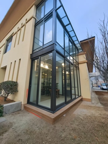 一张现代风格的室内窗户特写照片,采用高清晰度3D渲染技术,光线明亮柔和,以自然光为主,从窗外照射进来,营造出通透、干净的氛围。窗框材质为深灰色金属,表面光滑带有细微的哑光质感,搭配一个金色的金属把手,位于窗框右侧中间位置。窗外是城市景观,有高楼大厦、绿树和街道,但窗户本身的构造为全新设计的样式——[请在此处插入您希望的全新窗户构造描述,例如:上下推拉式双层玻璃窗,带有横向分隔条和内置百叶帘;或左右对开式拱形玻璃窗,边缘有精致的雕花装饰;或不规则多边形全景落地窗,无明显分隔但有隐藏式边框]。室内墙体为纯白色,窗台下是浅色的洗手台一角,整体画面构图平衡,色彩以黑白灰为主色调,辅以窗外的自然绿色和建筑色彩,视觉层级清晰,窗户作为主体被突出展示,细节丰富,真实感强,符合现代家居设计的审美和展示需求。