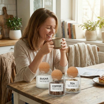 超写实摄影风格,深色背景下,一个透明玻璃罐装满深棕色咖啡豆,罐口敞开,上方另一个玻璃罐正倾斜着将大量咖啡豆倾倒而下,咖啡豆在空中形成自然散落的动态弧线,部分已落入下方罐中,部分散落在黑色光滑桌面上,温暖的侧上方光源照亮咖啡豆,凸显其表面的光泽和纹理细节,光影对比强烈,营造出浓郁、诱人的咖啡氛围,画面聚焦于咖啡豆的质感与动态瞬间,整体色调以深棕、黑色为主,点缀金色高光。