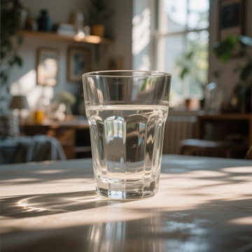 清透玻璃杯,融合质朴陶边与轻拟物纹理,简约主义风格,呈现柔和光影与自然呼吸感。