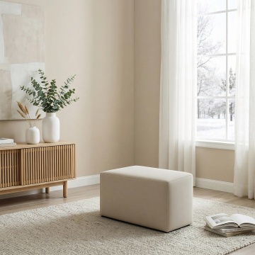 明亮柔和的自然光洒满整个空间,采用极简北欧风格设计,以米白色、浅木色和原木色为主色调,温暖而治愈的氛围。画面中展示的是一个变换了不同家具环境的客厅,整体构图保持对称美学与开放式布局,光线从左侧窗户斜射进来,在浅色木地板和条纹地毯上形成清晰的光影层次。墙上挂着两幅简约线条的植物装饰画,搭配原木边框。左侧有一盏弧形黄铜落地灯,灯光柔和,旁边摆放着一盆绿植。中央是一张浅灰色布艺沙发,搭配几个不同纹理的浅色系靠垫,沙发前是一张原木色茶几,上面整齐摆放着几本书籍和一个小巧的陶瓷花瓶。整体画面质感细腻,线条简洁流畅,空间通透,营造出舒适、宁静且温馨的居家氛围。