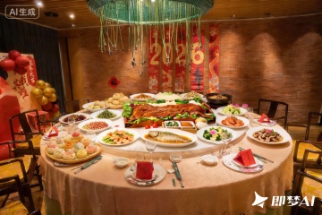 热气腾腾的鸳鸯火锅冒着浓郁香气,锅中翻滚着鲜红的麻辣汤底和清亮的菌汤,周围摆满肥牛卷、虾滑、毛肚、青菜等各色食材,木质餐桌上铺着传统花纹餐布,背景是古色古香的中式屏风和红灯笼,营造出温馨热闹的火锅盛宴氛围,整体呈现出温暖诱人的色调和丰富的层次感,充满地道的中式火锅文化气息。