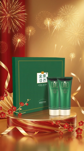 红金双色礼盒,重拟物质感搭配鎏金丝带,金属光泽瓶身彰显奢华时尚,节日氛围浓厚,传递喜庆与促销双重魅力。