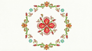 一组12个具有浓郁传统民族风格的圆形和方形刺绣纹样,采用蓝绿色、橙色和米白色为主色调,以黑色为纯色背景,纹样包含花卉、几何线条和卷曲装饰等元素,每个纹样均有独特的对称图案设计,整体以3行4列的规整网格排布,呈现出精致细腻的刺绣质感和复古华丽的视觉效果,适合作为传统服饰、家居装饰或文创产品的图案素材集合。