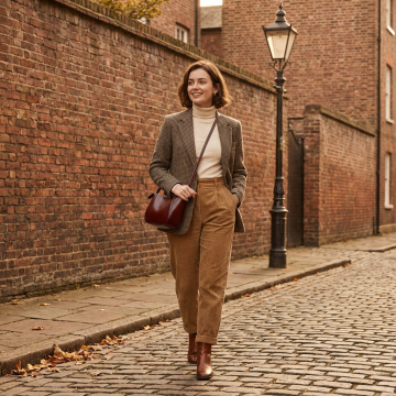 一位女性迎着晨光,轻松自信地走在城市街道上