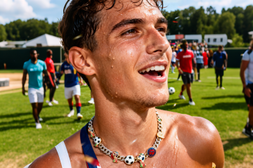 世界杯派对,户外,草坪,足球氛围,欧美帅气男生,脸部特写,潮流世界杯首饰,派对,热闹,大师级拍摄