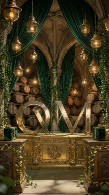 全景构图,拜占庭风格金色穹顶的内表面,融合螺旋状放射纹理与几何马赛克镶嵌工艺,浅香槟金到古铜金的渐变背景上,交错分布着细密的锤击凹痕与阿拉伯藤蔓纹样,右上方斜射的光线在凸起的葡萄藤装饰上形成钻石切割般的高光,凹陷处沉淀着红铜色阴影,表面悬浮着24K金箔碎屑与微型水晶棱镜,折射出星芒状光斑,穹顶中心垂落着由齿轮与鸢尾花交织而成的动态吊灯轮廓,整体呈现神圣与机械美学的共生感。