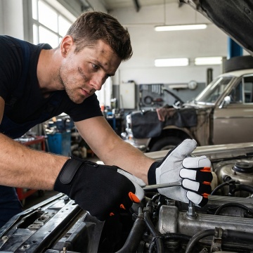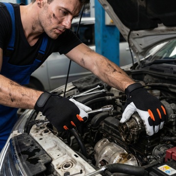 保持手套细节不变,分清正反面,一个外国帅哥穿着这双手套在修剪花园