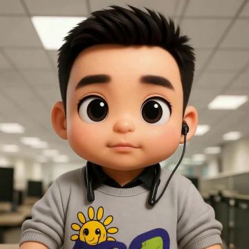 软3D风格卡通男孩,大眼萌趣,塑料质感肌理,动漫风设计,办公场景中佩戴耳机,可爱感十足。