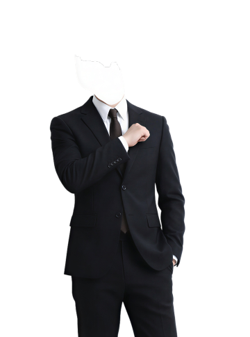 一位年轻亚洲男性,身着剪裁合体的黑色西装,内搭白色衬衫,系着黑色领带,左手自然插在西装裤口袋,右手轻握西装前襟,面带温和微笑,姿态自信挺拔,背景为纯白色,整体呈现清晰、专业、正式的商业人像摄影风格,光线均匀柔和,突出西装的挺括质感与人物的精神面貌。