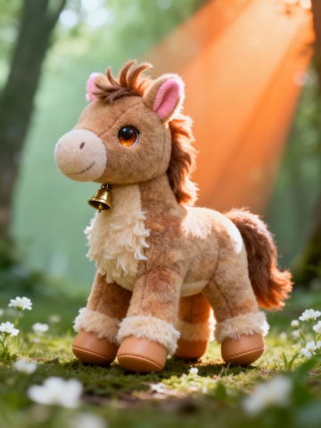 软3D风毛绒小马,梦幻光影中萌态可掬,毛发生长质感细腻,卡通感十足,温暖治愈,尽显温馨与可爱。
