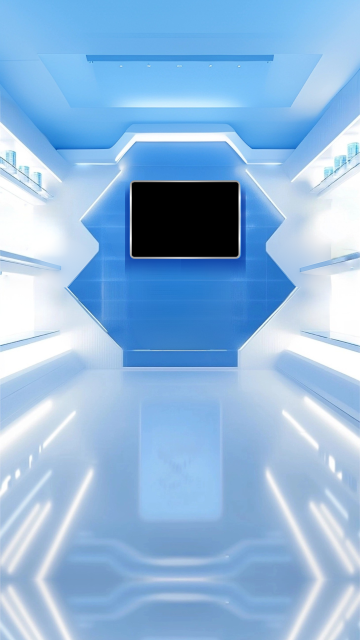 全景构图,极简风格的量子生物实验室内部,6米高的纳米自洁玻璃幕墙让晨光均匀漫射,360°环绕式无影灯带在悬浮式天花板上形成精密的几何光网。中央悬浮着由超导磁悬浮技术支撑的环形实验台,台面采用航空级白色陶瓷复合材料,边缘嵌入冷光蓝色状态指示灯。地面是无缝拼接的超白玻璃,倒映着天花板的光影矩阵与墙面模块化生物培养舱的蓝色数据流。左侧墙面上嵌入式智能试剂架自动分类排列着带荧光标识的纳米试管,右侧半透明亚克力隔断后可见带全息投影界面的基因测序仪,所有设备线条呈现精确的135°倒角处理。空气中悬浮着0.1微米级的净化气泡,整体色调由92%的超白与8%的科技蓝构成,营造出零重力感的绝对洁净科研空间。