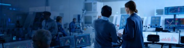 未来感科技实验室,3D风机器人操作虚拟现实,简约主义设计,展现高科技氛围。