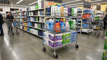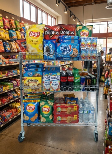 超写实主义摄影风格,高清晰度,明亮自然光从顶部天窗和两侧高处窗户均匀洒落,光线柔和无强烈阴影,整体色调以工业灰、金属银、纸箱棕黄为主,辅以局部亮色点缀。纵深构图,中央是洁净光滑的浅灰色环氧地坪通道,两侧高耸的金属仓储货架整齐排列至画面尽头,货架上堆满不同尺寸的棕色纸箱,部分纸箱贴有蓝色或黄色胶带标签。不同样式的现代化仓库内部场景,保留金属货架结构和整齐堆叠的纸箱核心元素,可替换为具有不同布局(如U型货架、多层阁楼式货架)、不同仓储设备(如叉车、传送带)或不同货物类型(如塑料托盘、金属容器)的仓库环境,通道尽头可设置不同的墙面设计或仓库门样式,保持空间的通透感和工业仓储的秩序感,画面干净整洁,细节丰富,具有强烈的空间纵深感和真实的材质质感。