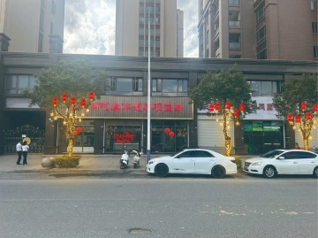 超写实风格商业步行街黄昏场景,暖金色夕阳低角度照射,天空呈现渐变的蓝紫色与粉橙色云彩,现代风格多层商铺建筑,玻璃幕墙与木质、金属材质结合,底层商铺灯火通明,行人悠闲漫步,远处城市高楼剪影,地面光洁反射光影,整体氛围繁华、时尚、充满活力,具有高端商业地产的视觉质感与吸引力,构图采用透视线引导,视觉焦点集中在步行街中央区域,光影对比鲜明,细节丰富,符合商业宣传所需的高品质、吸引人的场景呈现。