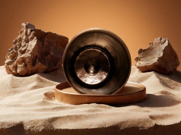 中式古典水墨风,微缩艺术展现竹石意境,卷轴背景增添文艺气息。