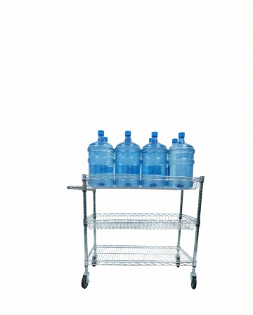 现代简约家居风格的亚马逊主图,明亮洁净的浴室场景,3/4侧面中央放置黑色纹理金属置物架。顶层挂2-3条蓬松大浴巾和小毯子,中层叠放整齐毛巾,下层放置2个5加仑水桶,侧面挂钩挂衣物刷。置物架底部轮子清晰可见,其中一个微微离地。金属杆和轮子上有微小水珠特效,突出防潮防锈特性。背景为浅灰色瓷砖墙和白色洗手台,整体光线明亮柔和,突出产品高端质感与实用功能。