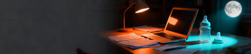夜晚城市背景的办公场景,从不同视角展现。大型落地窗,窗外是华灯初上的繁华都市夜景,天空呈现出深蓝到橙红渐变的暮色。木质桌面上,一台打开的笔记本电脑,旁边有一个点燃的玻璃烛台,烛光温暖。整体画面采用写实风格,光影效果突出,营造出宁静而专注的办公氛围,色调以深蓝、橙色和暖黄为主,光线柔和,细节丰富,具有电影般的质感。