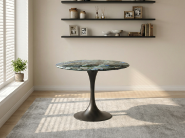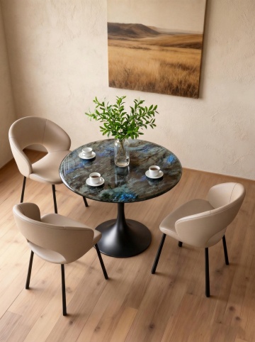 把桌面花瓶换成白色细颈陶瓷花瓶(插几支紫色花枝,色调清新雅致)