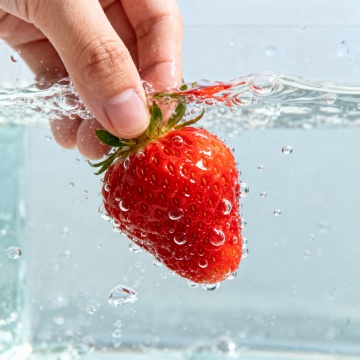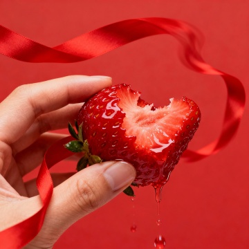 一堆新鲜饱满的草莓,表面覆盖着晶莹的水珠,散发着诱人的光泽,草莓的叶子呈现出鲜亮的绿色,背景为红色,整体画面色彩鲜艳,充满了生机与活力,具有高度的写实感和细腻的质感表现,光影效果突出,营造出一种新鲜、美味的氛围。