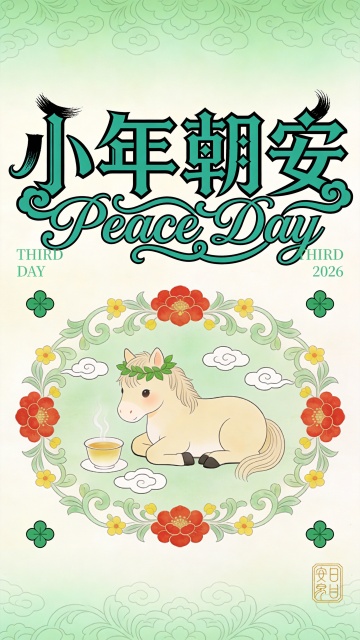 工笔风与重拟物风融合,鎏金浮雕骏马踏云而行,古典中式美学尽显奢华神圣,金属质感凸显体积感,祥云牡丹烘托“天年日”节日氛围。