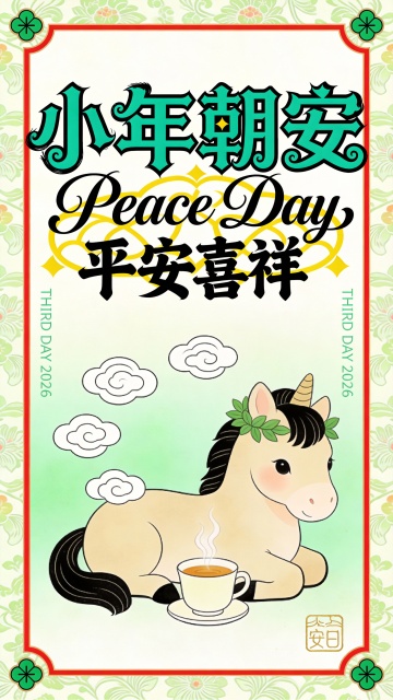3D卡通马拟人化设计,融合刺绣风与毛发生长质感,国潮元素点缀“新年”浮雕字,喜庆祥和,传递春节祝福。