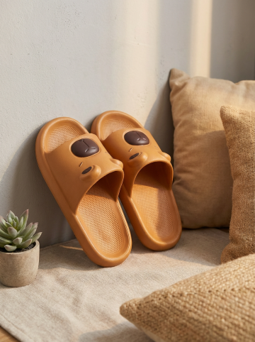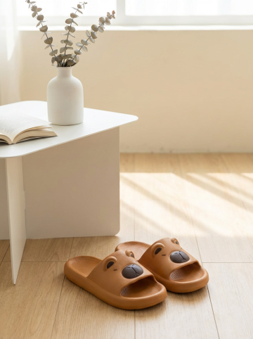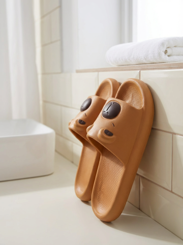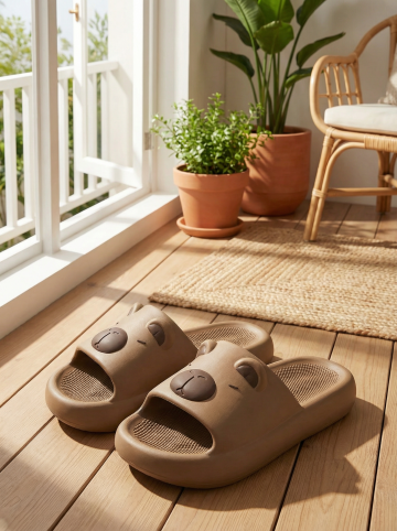 保持原图主体不变,更改背景,背景是希音爆款图背景,特写镜头,拖鞋平放在地上或靠着墙面,鞋子的摆放姿势可以改变图片比例是3:4,分别生成10张单张主图