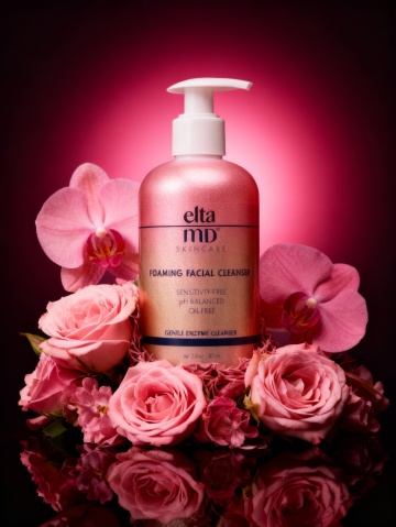 鎏金质感瓶身搭配粉红玫瑰与兰花,轻拟物风呈现奢华浪漫,柔和光影营造唯美感,金属光泽点缀,实景感十足。