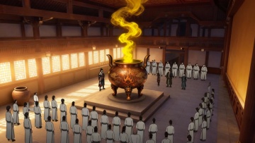 一个英俊的中国古代道长,飘逸的黑发,打太极