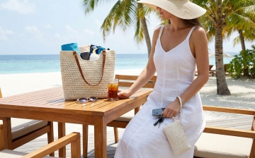 高质感产品摄影风格,极简主义设计,纯浅灰色背景,柔和均匀的顶光照明,清晰的阴影细节,一只女性的手(肤色自然,指甲修剪整齐,姿态自然放松)从上方握持着手提袋的提手,手提袋主体为白色帆布材质,具有细腻的纹理和轻微的褶皱感,变换为带有简约皮革拼接装饰的款式,提手设计为宽扁的皮革材质并与袋身形成对比色拼接,袋身正面有精致的压纹品牌标识,整体保持干净利落的线条和高级感,构图居中对称,画面纯净无其他元素,突出手提袋的设计细节和材质质感,达到商业产品宣传级别的视觉呈现。