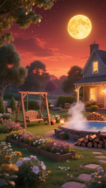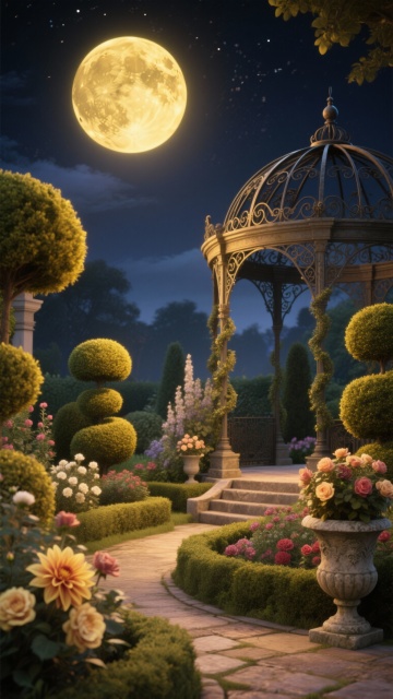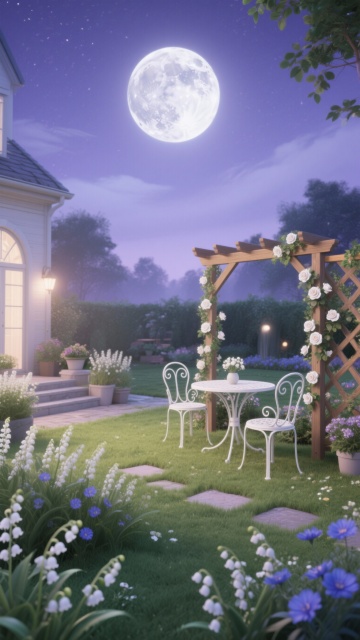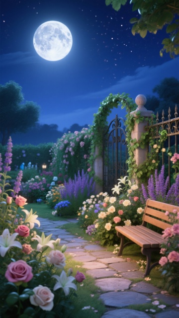 生成10张月亮和花园的美景图