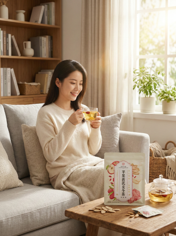 中式禅意居家场景,轻拟物风木雕质感泡脚桶,实景感温馨氛围,传递舒适养生体验。