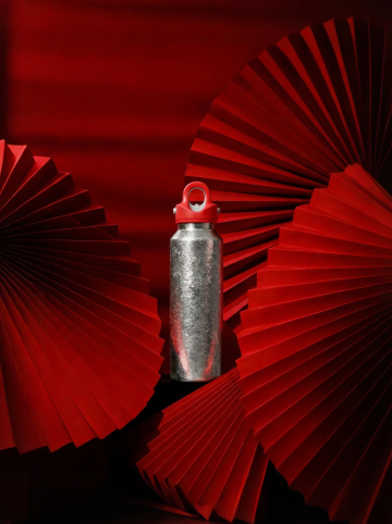奢华感与优雅感交织,3D重拟物风设计,简约主义玻璃瓶身搭配金属喷头,面料风丝巾点缀,尽显高端质感。