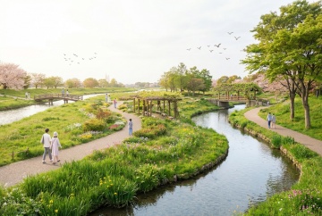 参考图中的【箭头指示区域】代表文字表示内容 请生成写实摄影效果的实景图速完成景观出图