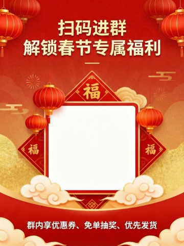 插画风融合国潮与轻拟物设计,剪纸元素点缀,营造喜庆温馨的春节氛围,展现家庭共度年货采购的幸福场景。