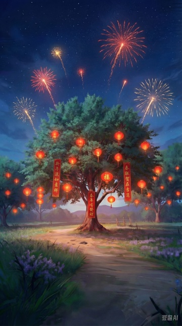 梦幻插画风,虚拟自然景象,萤火虫在月光下翩翩起舞,营造出宁静而神秘的氛围。