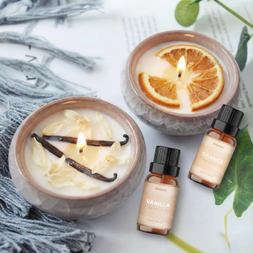 请你图中的叶子替换成桉树叶和薄荷,放入图2-图3精油瓶,生成图片尺寸1:1,要求精油瓶瓶身的标签纸不要改动,瓶子整体比例缩小,瓶子放在左边