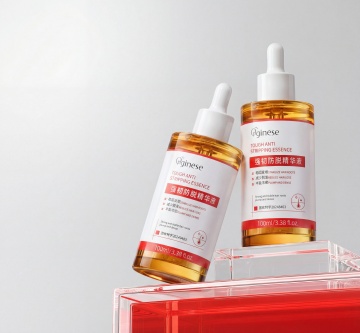 特写镜头,JOON AME品牌的月光银磨砂玻璃瓶身沐浴在晨露微光中,瓶口镶嵌着珍珠母贝质感的按压泵,静静斜倚在覆满露水的深褐橡木托盘上。瓶身周围环绕着三簇立体绽放的铃兰——其中两朵正以肉眼可见的速度舒展花瓣,第三朵则凝结着一滴欲坠的露珠。背景是渐变的雾蓝与象牙白交织,悬浮着若隐若现的植物分子结构线稿。左侧水晶标签镌刻"三重神经酰胺",右侧悬浮着鎏金字体"24小时屏障修护"。海报顶部弧形排列"肌底焕活 屏障新生 月光修护精华露",底部以水墨笔触勾勒"微生态平衡配方"与"敏感肌专研"的烫银文字,右下角淡金色印章标注"限定礼盒 买正装赠定制按摩板"。