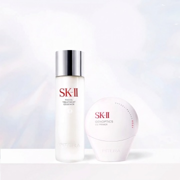 清新玻璃瓶置于虚拟自然水景中,花影轻舞,尽显清爽与清透感。