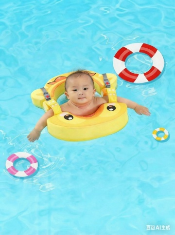两个小女孩在泳池中嬉戏,前景中一个女孩正举着橙色游泳圈,笑脸灿烂,水花四溅,背景有蓝色遮阳伞和阳光洒下的金色光斑,整体呈现温暖欢快的夏日氛围,高清晰度写实摄影风格,色彩明亮饱和,光影层次丰富。