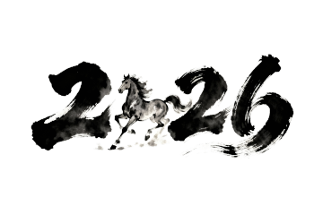 剪影风马形融合2026数字,红黑配色彰显喜庆与国潮,剪纸艺术勾勒中式民族韵味,贺岁氛围浓厚。