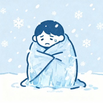 不改变原图的大小,帮我改成全身冰冻的状态,求救冰冻的表情 双手环抱