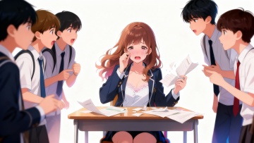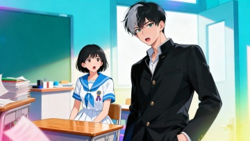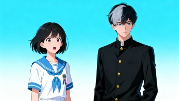 清新动漫风,少女在樱花树下回眸,校园背景,色彩柔和,充满春天的气息。
