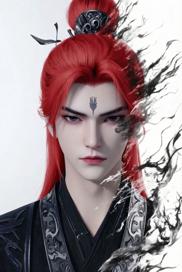 华丽古风水墨人物插画 水墨浅色粗湿笔勾线+回折处干脆利落 水墨湿笔铺色,水彩看涂晕染,弥散渐变,色彩饱满有层次,水迹点染,金色银色点缀 宣纸质感,粗颗粒质感 时间凝固瞬间,动感构图,大写意留白 人物特写,从头顶俯瞰,暗色调,主题枯萎,主色深绿+幽蓝+暗红+黎色+浅云背景,墨色长卷发男子 丝绸+丝绒 深蓝色交领汉服 红色内衣 黑色细躞蹀腰带 绸缎般的浓密长发+高光 繁复褶皱+华丽饰品和纹理 意境