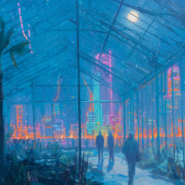 赛博朋克风未来都市,霓虹光影交织,粒子流缠绕高楼,飞行器划破云雾,虚拟现实与科技感碰撞,冲击力十足。