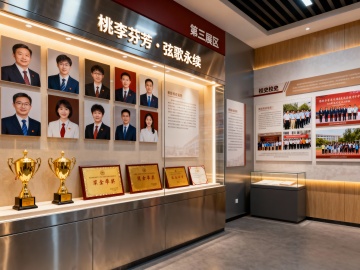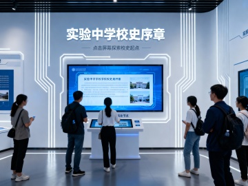 实文化一小校史展厅 序厅:时光之门・精神序章​ 核心视觉​ 主形象墙,镌刻校训 “崇德笃学 砺行致远”,下方嵌入地面投影时间轴,流动呈现建校以来关键年份。中央设置全息投影装置,循环播放由师生共同拍摄的校史短片《薪火》,搭配校歌旋律营造沉浸式氛围。 ​ 前言、​互动节点 第一展区:拓荒岁月・弦歌不辍(19XX-19XX)​ 板块主题 从初创到奠基,在艰辛中扎根生长​ ​互动设计 触摸查询屏内置 “校史时间轴”,点击年份可查看对应时期的历史照片、新闻报道与口述回忆。​ 第二展区:成长蜕变・薪火相传(19XX-20XX)​ 板块主题 从规范到优质,在改革中蓬勃发展​ 1. 校园变迁​ 2. 名师风采​​ 3. 教育革新​ 第三展区:桃李芬芳・弦歌永续(20XX - 至今)​ 板块主题 从优秀到卓越,在创新中书写华章​ 1. 教学硕果​​​,荣誉展示 2. 校友星光​​ 3. 文化浸润​ 互动设计 设置 “时光信箱”,参观者可写下对未来的期许投入信箱 第四展区:筑梦未来・再创辉煌​ 板块主题 从现在到未来,在传承中迈向新篇​ 1. 发展蓝图​​ 2. 精神接力​ ​ 尾厅:岁月回响・心语留痕​ 核心设计 墙面展示 “校友祝福” 照片集,中央设置留言台,提供纸笔供参观者留言。​ 结语 风格以现代风格为主,帮我出10张图