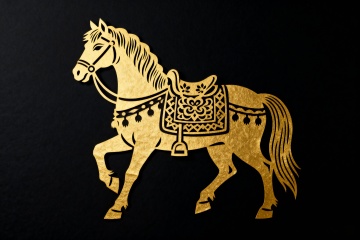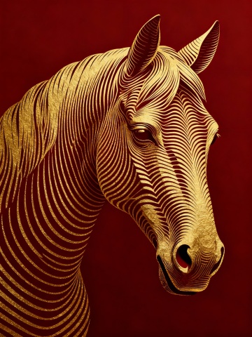 鎏金浮雕风格的马首,以描边线条勾勒出中式古典韵味,双色设计融合金属质感,尽显奢华与优雅。